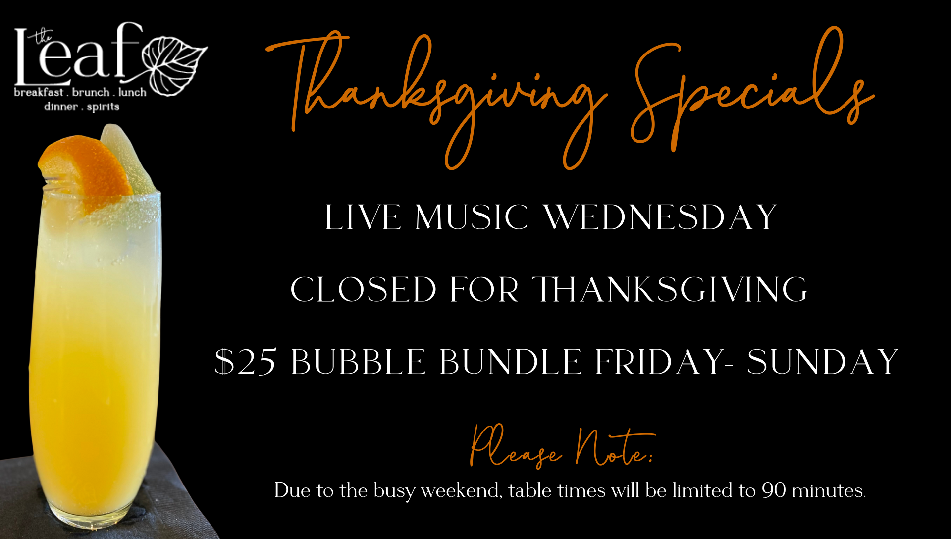 Join us at The Leaf for a week of Thanksgiving specials that you won’t want to miss! 🦃
